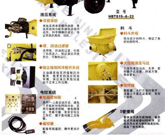 細(xì)石混凝土泵配件有:主油缸、砼缸、三相異步電機(jī)、主油泵、料斗、S管、電配柜、手動油泵、活塞;00#鋰基脂;常用的電器配件(按鈕天關(guān)、行程天關(guān)、斷路器、接線端子、變壓器等)、液壓液管;46#液壓油;眼睛板、切割環(huán)(當(dāng)設(shè)備打到5000方以上就可以備了)等等